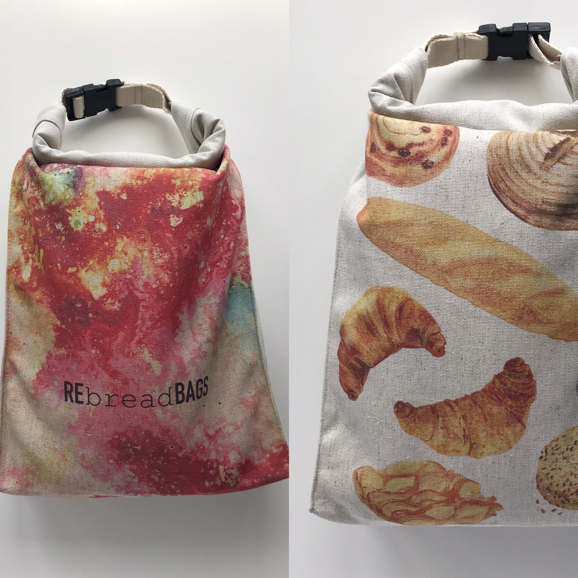 These Digitally printed hemp canvas bags were created as a sustainable food storage solution in response to elimante plastic bags. The unique design keeps air out and freshness in.